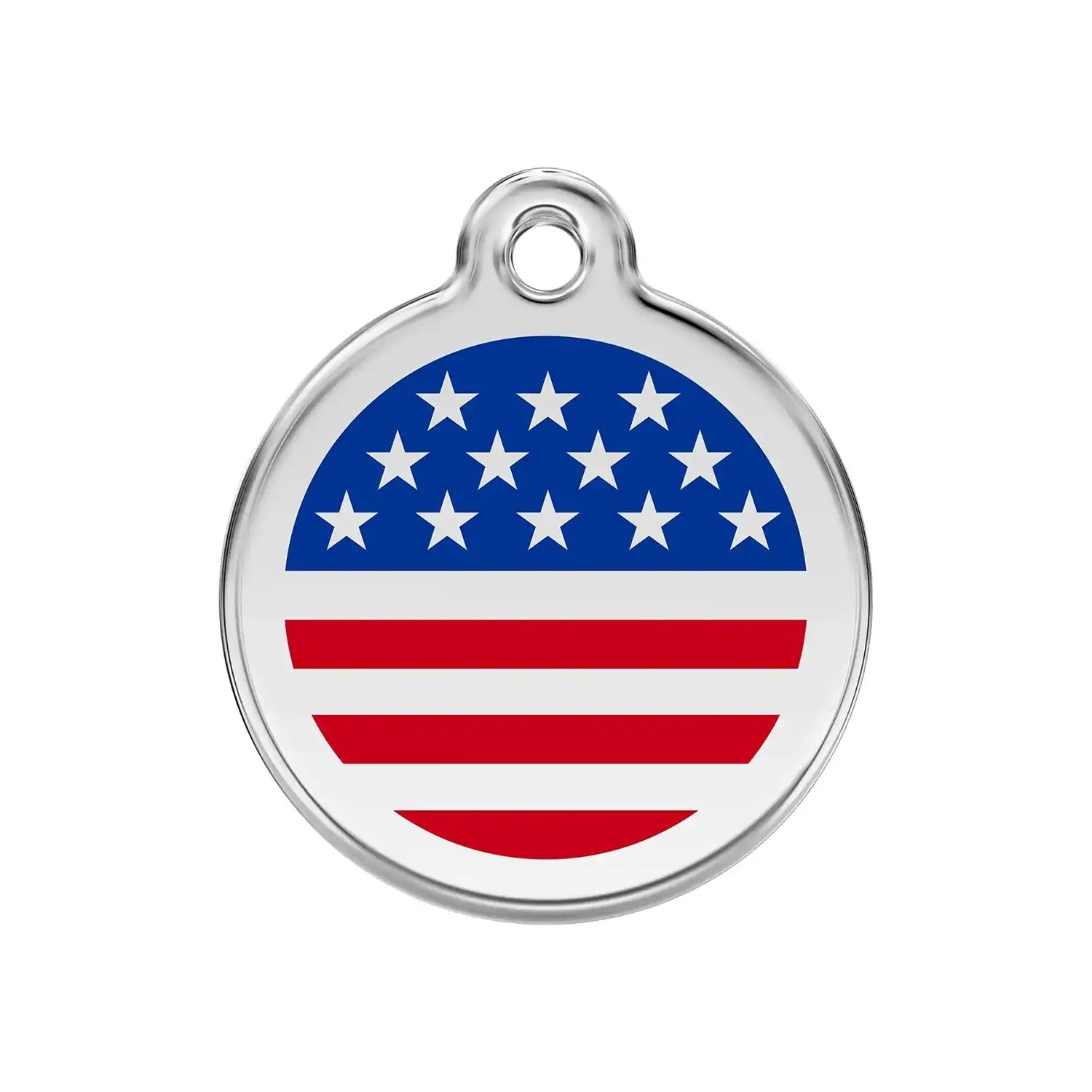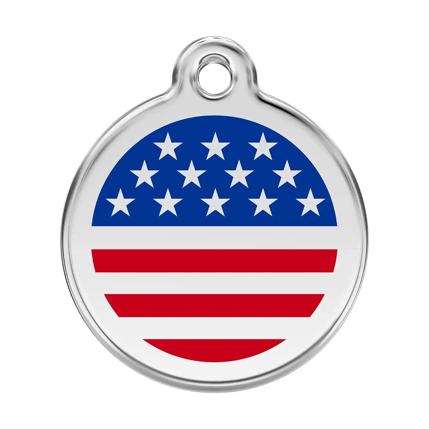 Red Dingo Stars & Stripes Pet ID Dog Tag - Engrave your pet's vital information on these solid stainless steel tags. Built to last a lifetime, Red Dingo tags won't rust, corrode, or break. Made from 3mm thick stainless steel with a decorative enamel design. Designed in Australia, Engraved in the U.S.A. for the coolest dogs in the world.