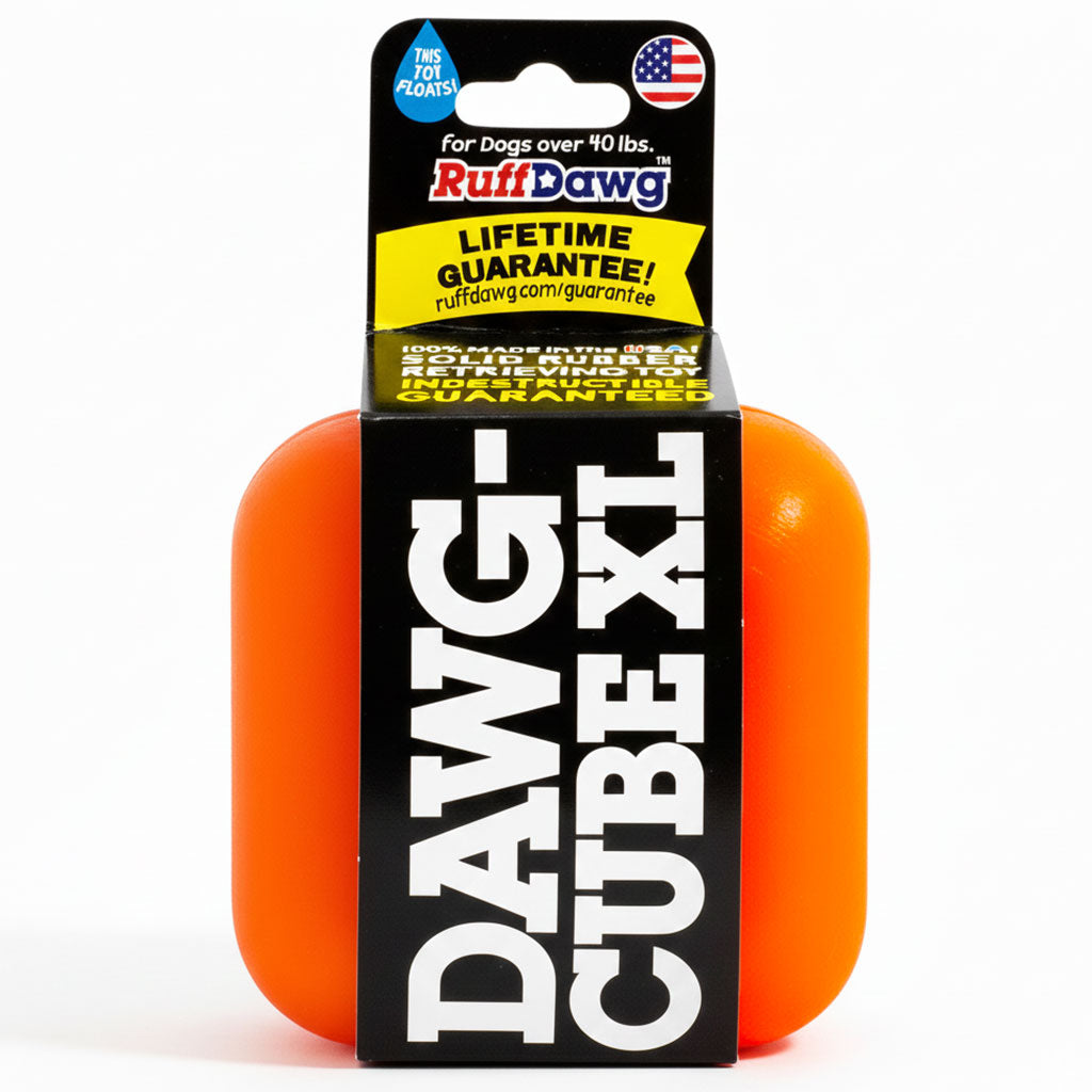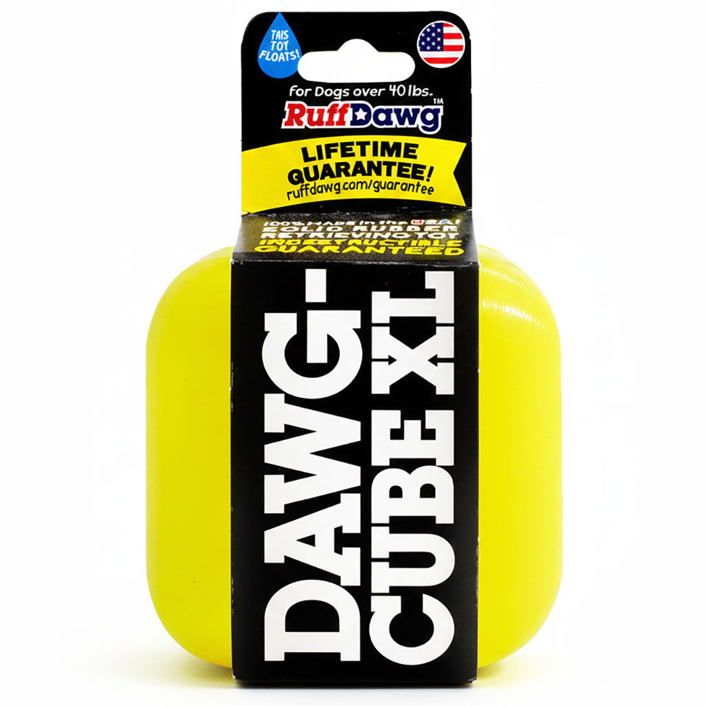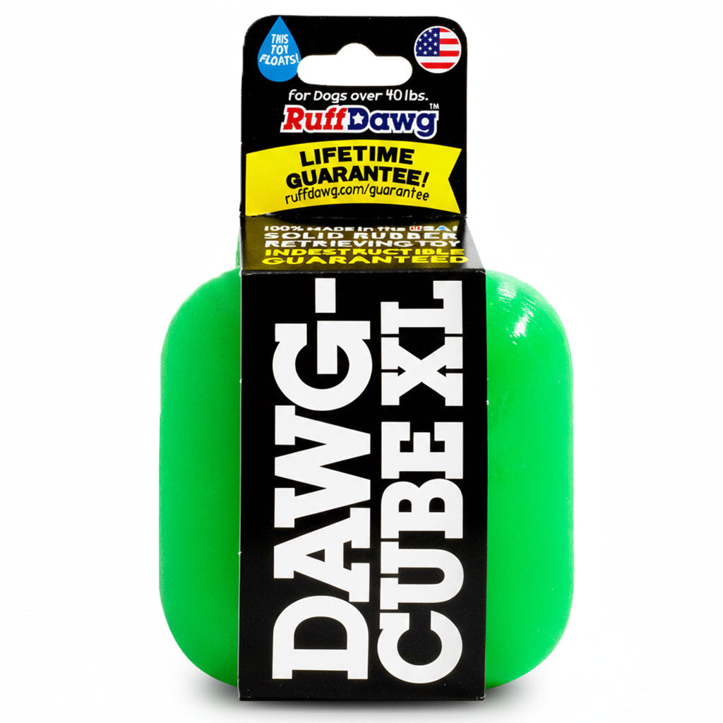 Ruff Dawg Cube - The heavy-duty solid rubber Dawg-Cubes come in 2 sizes and an assortment of bright neon colors. These virtually indestructible toys float and feature a crazy-bounce to activate your dog’s chase and retrieve instinct. They can take serious abuse during heavy play – all while still being gentle on teeth and gums, allowing the retrieving fun to go on and on! Made in the USA.