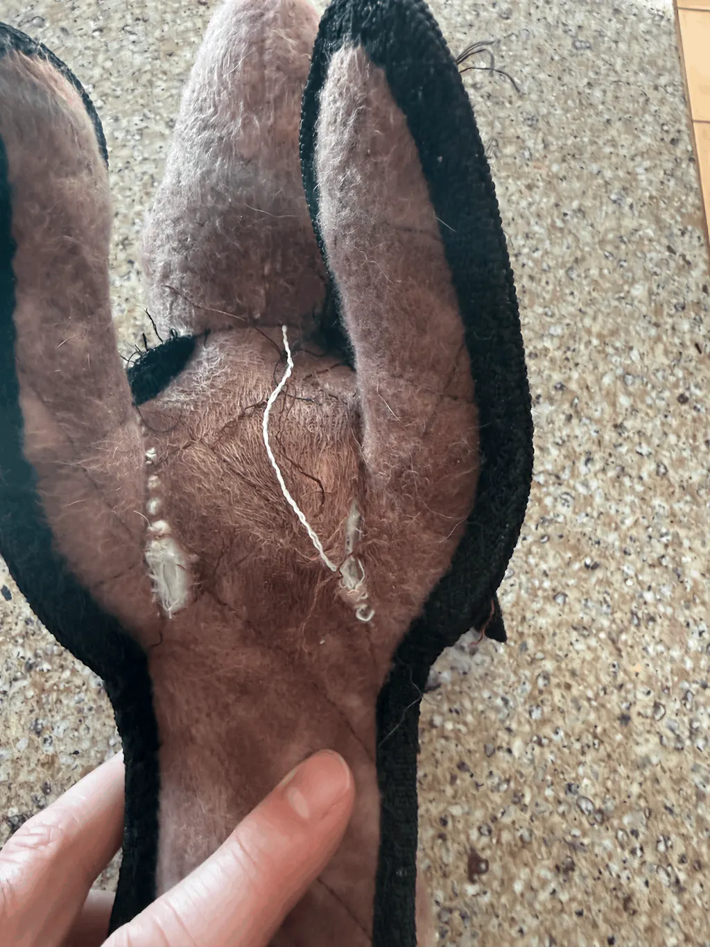 If your dog exposes the white stuffed core, remove the toy immediately to prevent ingestion. Loose threads should also be cut off promptly.