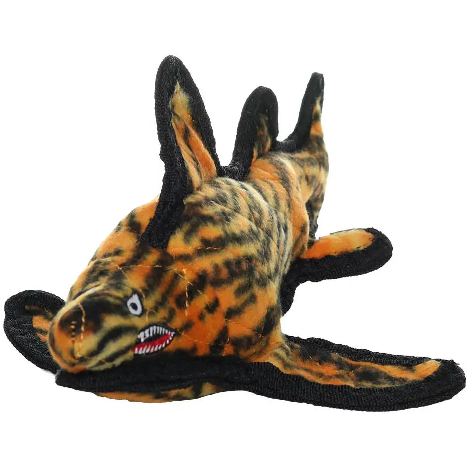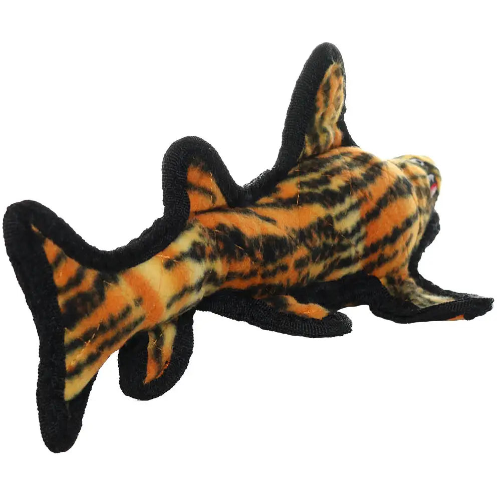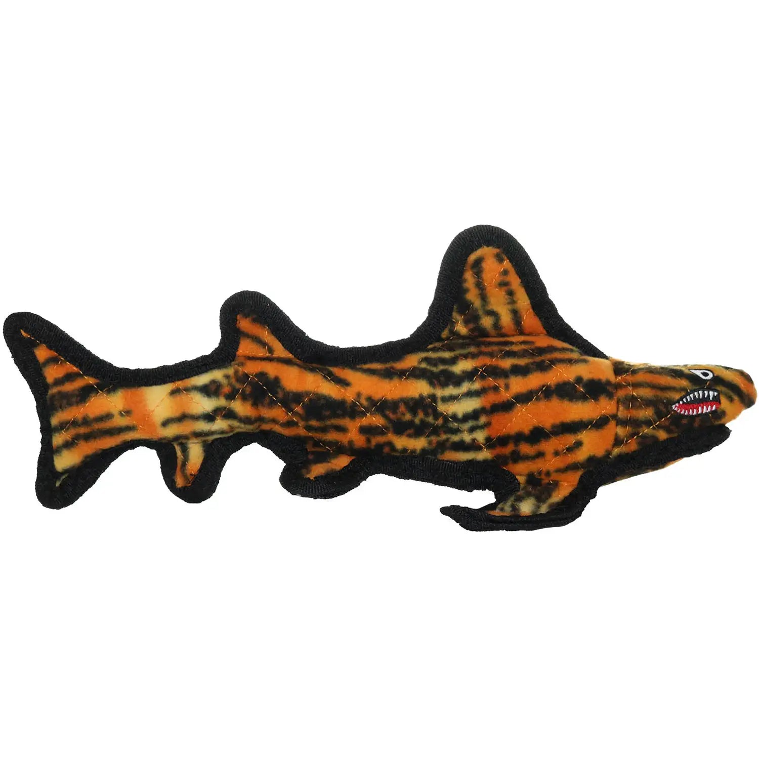 Tuffy Dog Toys – Tiger Shark - Frightening in the water, but fun in the living room! This playful predator is ready to make a splash during playtime. Perfect for games of fetch, tugging, and whipping around, Tiger Shark keeps your pup entertained for hours—indoors or out. He even floats and is machine washable for easy cleanup!