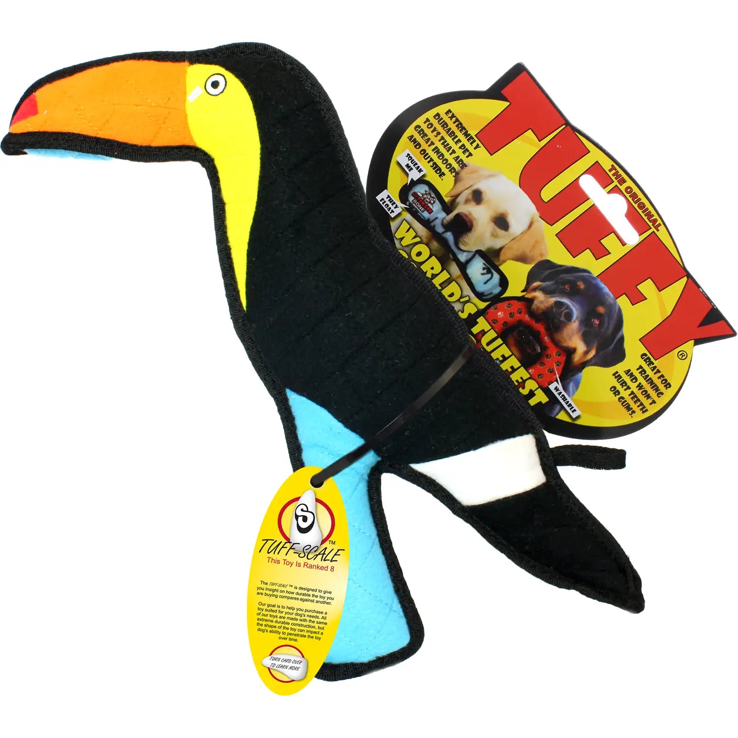 Tuffy Dog Toys Colorful Togo the Toucan -  Move over Sam and get a load of Togo! This "tuff" tropical tweeter makes a colorful companion for your canine. Togo does not squeak! Easy to toss and Float! -- soft edges won't hurt gums.