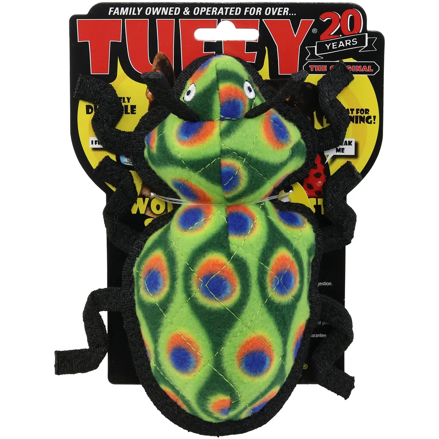 Tuffy Dog Toys Benji the Beetle - A new, brightly colored, interactive plush toy designed to captivate Fido's attention. Crafted with multiple layers of durable, pet-safe fabric, this Beetlfe features a vibrant, intricate shape with a colorful shell and a lightweight, ultra-durable body. Benji includes a built-in squeaker, adding an element of sound to entice Fido during playtime.