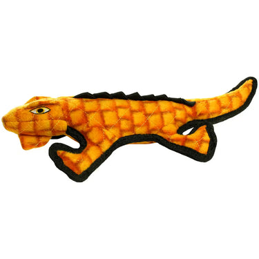 Tuffy Dog Toys Gila the Monster - The newest Desert Creature is designed to blend with the setting sun. Slither and Slide with Gila, with her multiple layers of webbing sewn around the edges of the toy. Gila also features a built-in squeaker. All the layers of this toy are bonded and sewn together to make one "Tuff" Layer. Sewn Multiple Times for added durability.