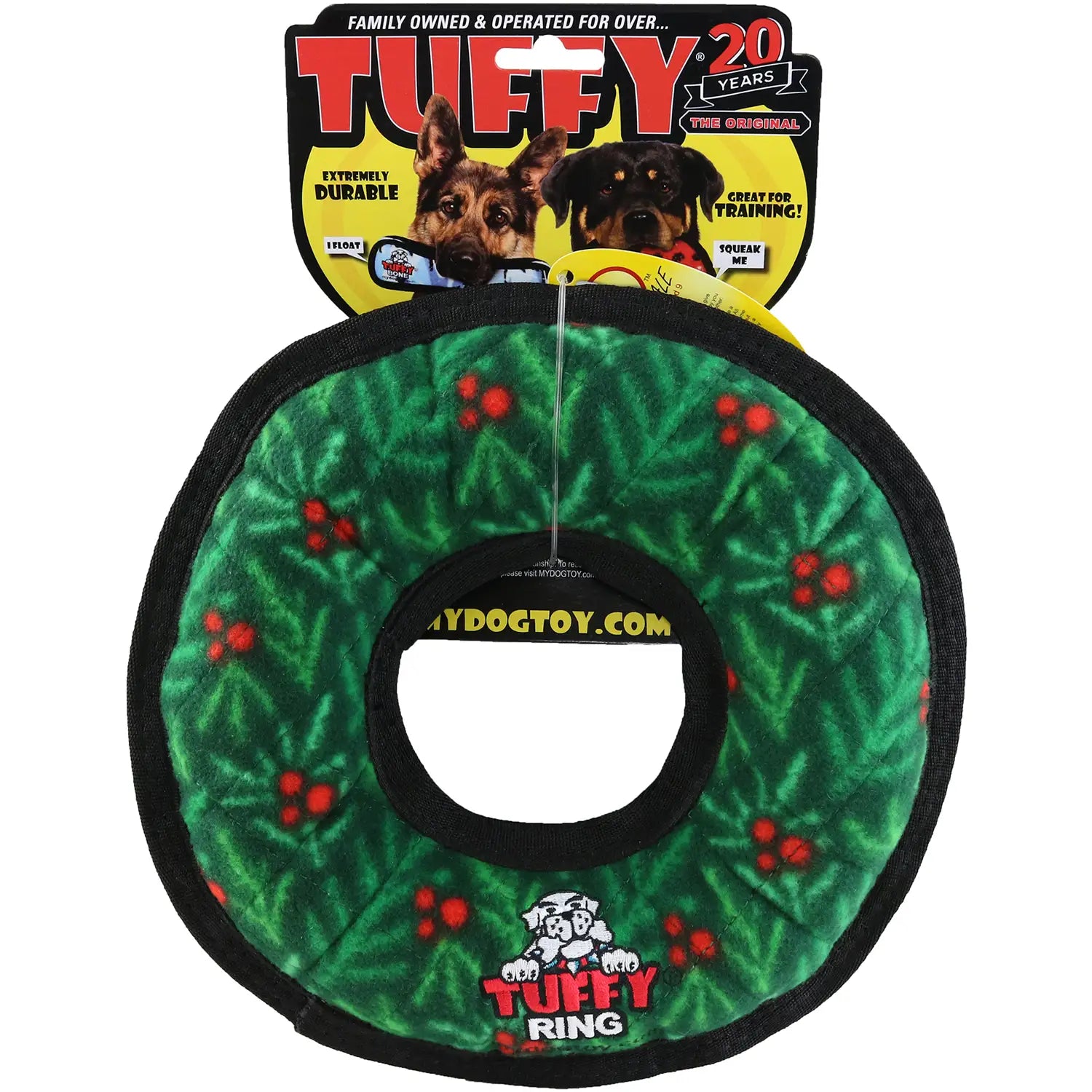 Make this holiday season extra tuff and festive with the Tuffy Dog Toys Holiday Ring Wreath! Designed to outlast ordinary plush toys, this durable Christmas dog toy is perfect for fetch, tug, and all-around holiday fun. Whether your pup’s pulling it under the tree or dashing through the snow, this wreath-shaped toy is built to spread cheer (and withstand serious play).