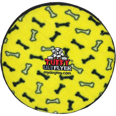 Tuffy Dog Toys Ultimate Flyer a great way to teach your dog to chase, catch, and retrieve. The built-in squeaker at the center of the flyer entices pups even more! This dog toy will intrigue your pet with its hovering and floating ability. Our unique soft construction is safe for high-speed catches and for those unfortunate misses. Disc floats so they can be used on land or in water. The soft edges are easy on your dog's gums and teeth.